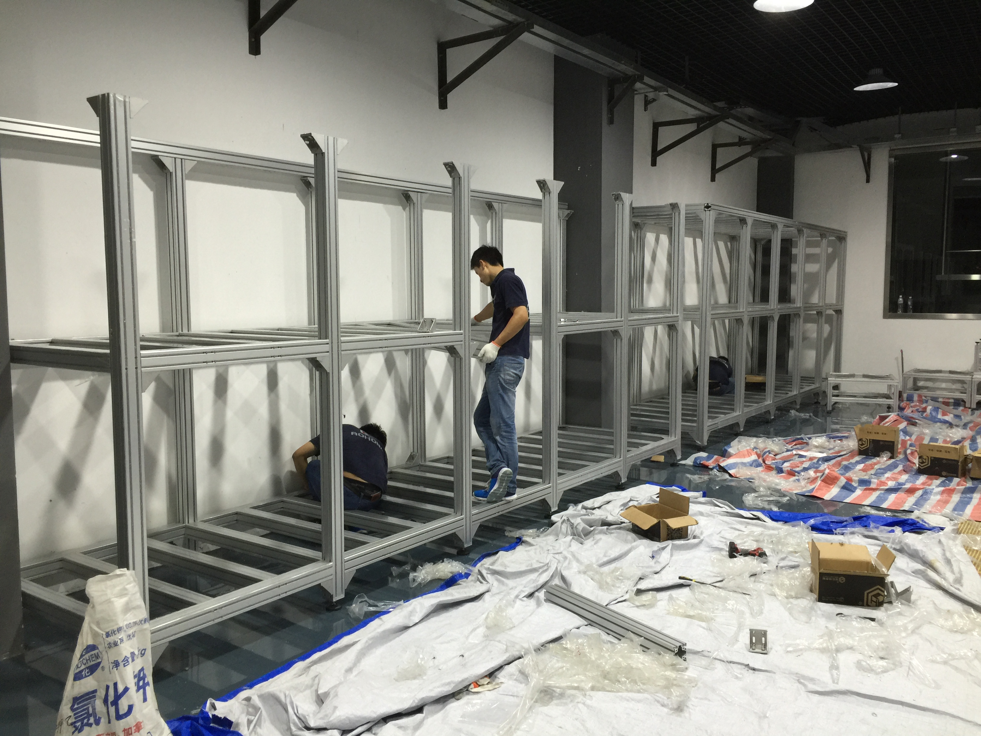 了解朱經(jīng)理的項目需求后,我們立刻對朱經(jīng)理項目進行設計,朱經(jīng)理的項目施工在崇明中華鱘夢園,約有200平方的占面積,每個定制鋁型材框架,高3米,長15米的,承載力要達10噸,我們整個鋁框架的方案全部采用歐標80120鋁型材做立柱,8080鋁型材做橫梁,結構連接采用12.9級高強度不銹鋼螺栓+打孔連接,并外面用直角件加固連接保確承重安全及結構穩(wěn)定。工藝,是加工好后,現(xiàn)場施工。自方案設計到生產(chǎn)總15天,并在5天內完成上門施工。